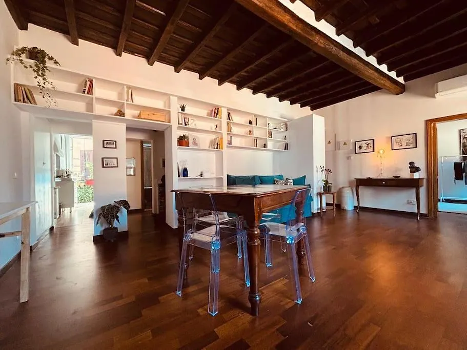 Appartamento Scala 31 Trastevere, di 90 m^2, vanta una vista sulla città e si trova a circa 2 km dai Musei Vaticani.
